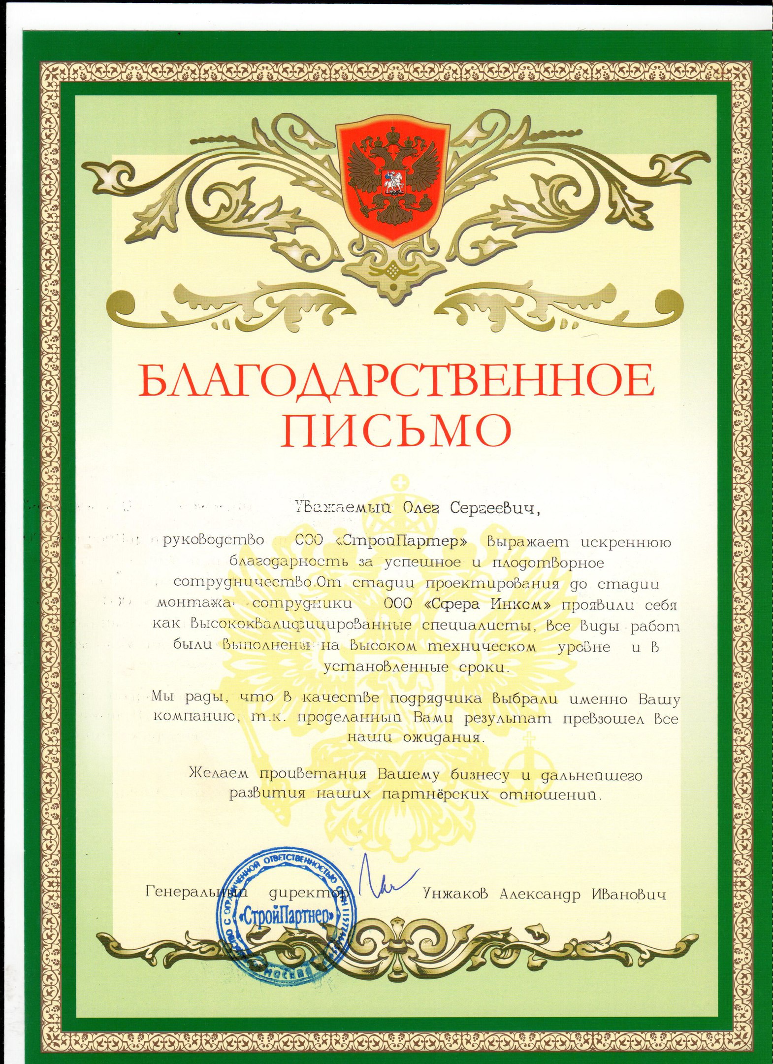 ООО «СтройПартнер» / Унжаков А.И.