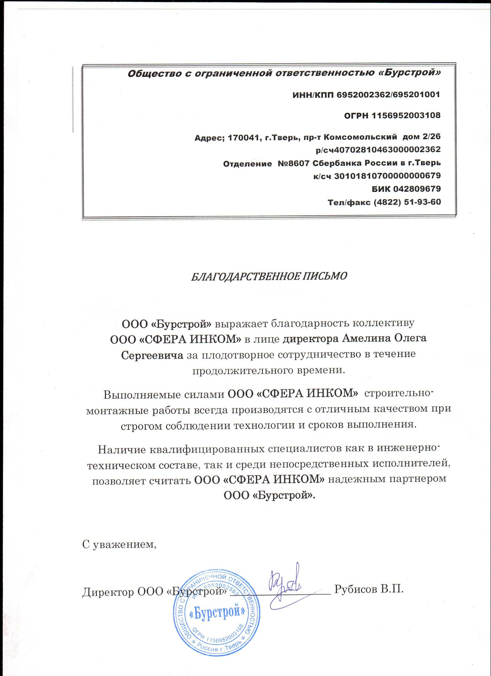 ООО «Бурстрой» / Рубисов В.П.